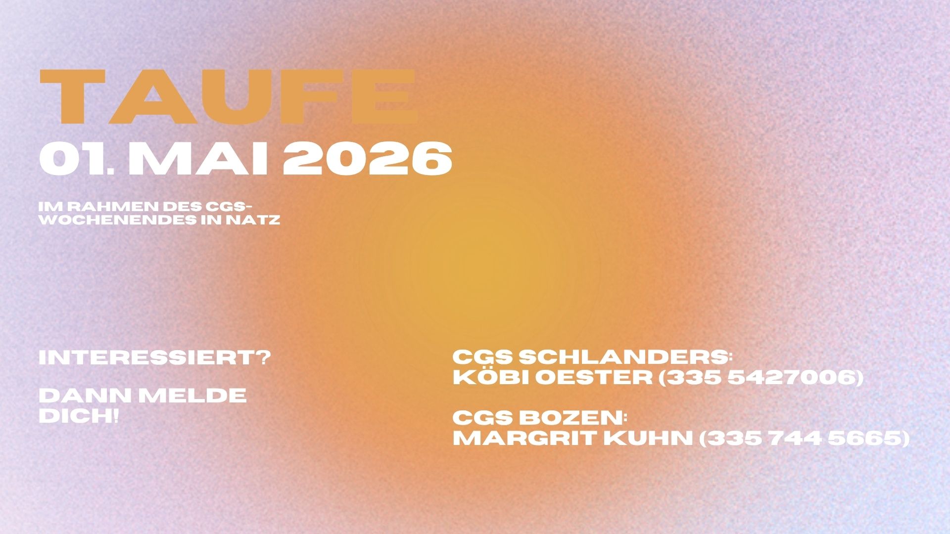 Bei anderen Fragen meldet euch bei Noemi Oester (+39 334 847 4778) oder info@christengemeinden.it
