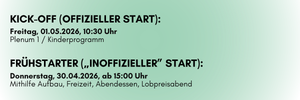 Eine Zeit im Jahr, in der wir als «big family» zusammenkommen und uns gemeinsam auf Gott ausrichten und von ihm hören wollen. Also – sei dabei!